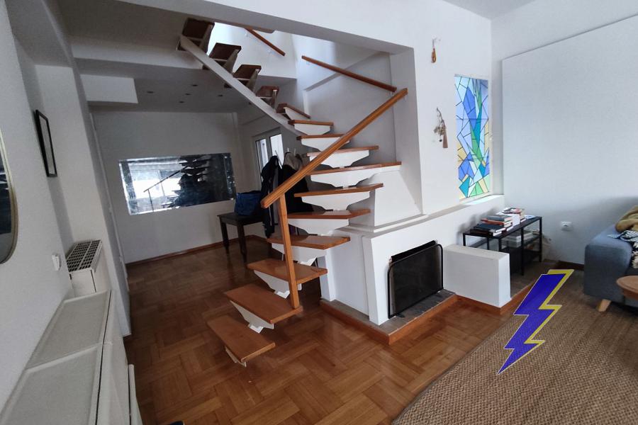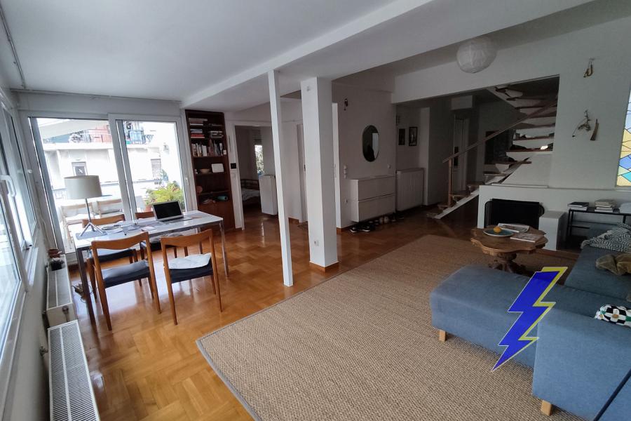 Exarcheia, Maisonette,, Rental, 124 sq.m, year built 1930, renovated in 2023, 3 rooms, 4th, 5th, Availability: Heating: Air-condition, Autonomous Oil, Condition: axcellent condition, Renovated, Floor type: Tiles, wooden floor, Window frames: Aluminum, Energy class: B+, Zoning: Commercial, Position: Corner, Frontal, Includes: Double glazing, Elevator, exclusive use of yard, Fireplace, Fly screens, Loft, near metro, Storeroom, Veranda, Characteristics: bathroom with window, Bright, built in closets, intercom, painted. property ID: 2814