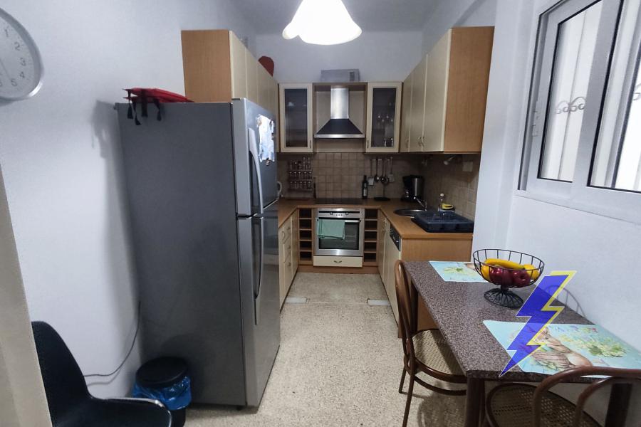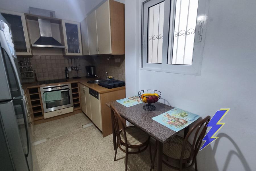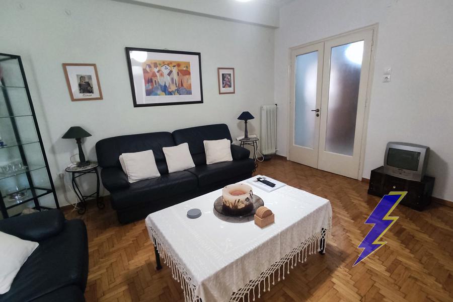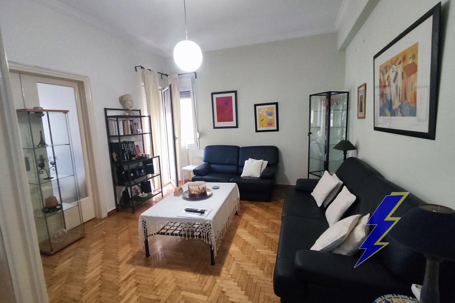 Kypseli, Apartment,, Rental, 65 sq.m, year built 1965, renovated in 2024, 1 rooms, 4th, Availability: Available, Heating: Air-condition, Condition: very good condition, Floor type: Mosaic, wooden floor, Window frames: Aluminum, Energy class: D, Zoning: Commercial, Position: Corner, Frontal, Includes: Double glazing, Elevator, Fly screens, near isap, near urban, Security door, Characteristics: balcony, bathroom with window, Bright, built in closets, Electrical devices, Furnished, intercom, next to the windows, no pets, painted, solar water heater. property ID: 2907